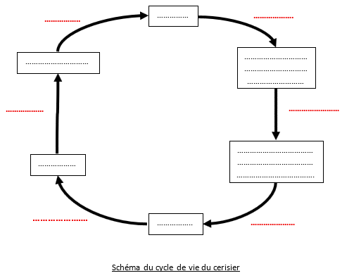 Indiquer les étapes de vie du cerisier. En rouge, indiquer les processus importants au cours de ce cycle.