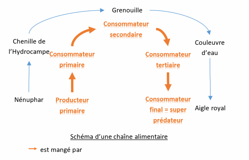 La chaîne alimentaire va assurer la circulation de la matière entre les divers organismes de l’écosystème.